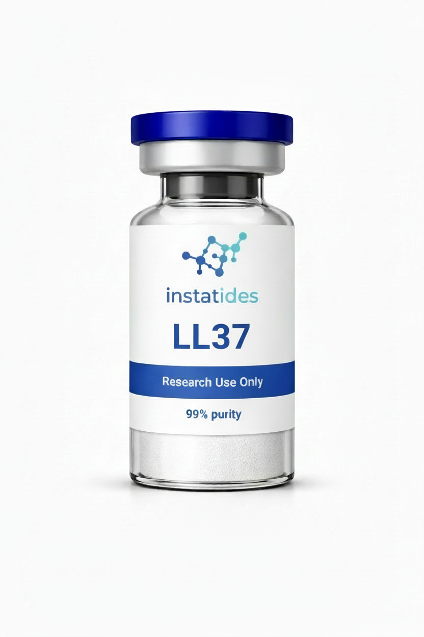 LL-37 is a research-use-only compound supplied as lyophilized powder. Available strengths: 5mg. Category: Recovery & Repair. For laboratory and analytical research purposes only. Not for human or veterinary use. Not for consumption. Not intended to diagnose, treat, cure, or prevent any disease.