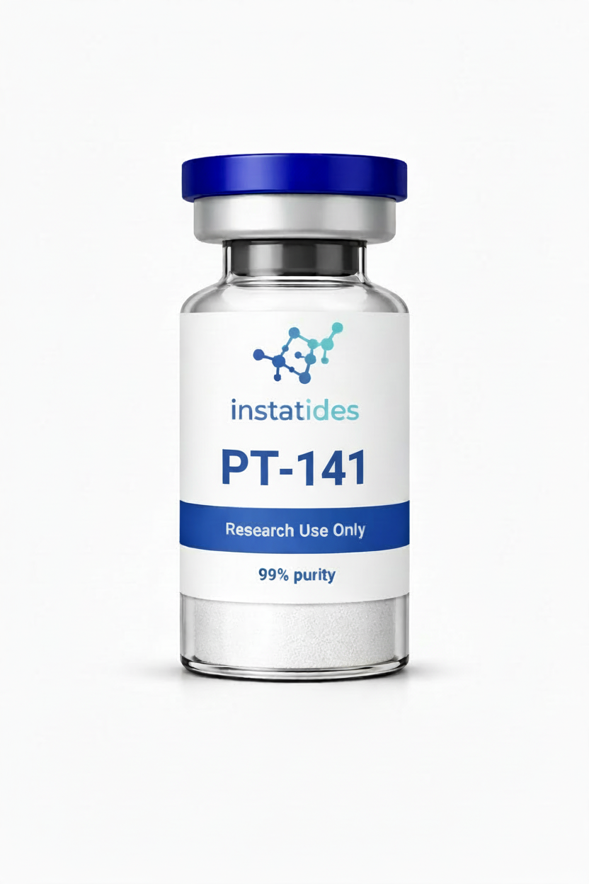 PT-141 is a research-use-only compound supplied as lyophilized powder. Available strengths: 10mg. Category: Hormonal & Reproductive. For laboratory and analytical research purposes only. Not for human or veterinary use. Not for consumption. Not intended to diagnose, treat, cure, or prevent any disease.