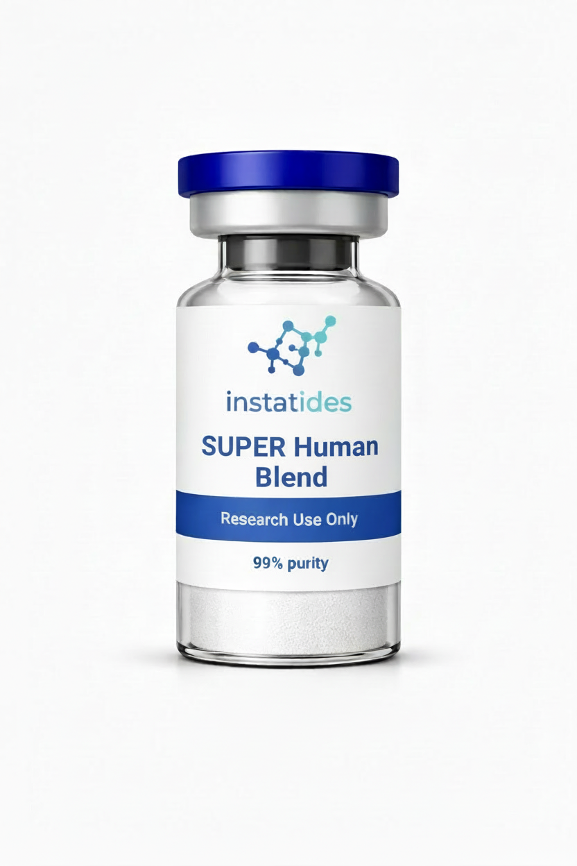 Super Human Blend is a research-use-only compound supplied as lyophilized powder. Available strengths: 10ml*865mg/ml. Category: Injectable Support Blends. For laboratory and analytical research purposes only. Not for human or veterinary use. Not for consumption. Not intended to diagnose, treat, cure, or prevent any disease.