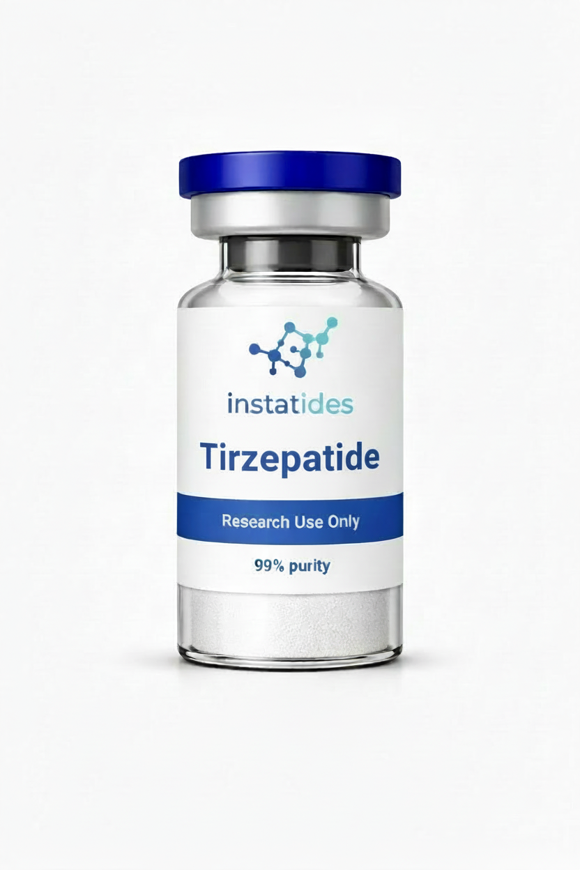 Tirzepatide — lyophilized powder. Available in 5mg, 10mg, 15mg, 20mg, 30mg, 40mg, 50mg, 60mg. For laboratory and analytical research purposes only. Not for human or veterinary use. Not for consumption. Not intended to diagnose, treat, cure, or prevent any disease.