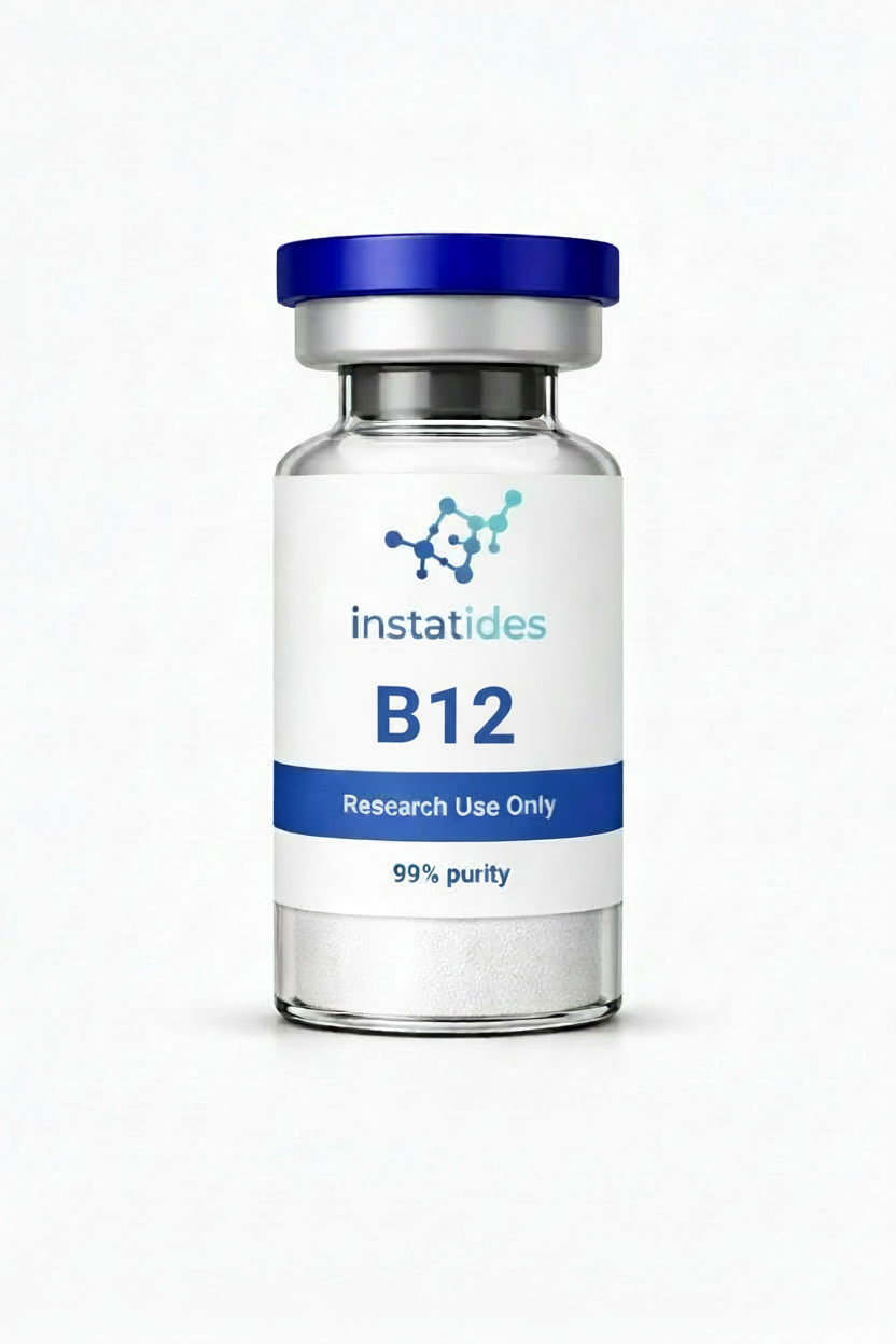Vitamin B12 is a research-use-only compound supplied as lyophilized powder. Available strengths: 1mg/ml/vial*10vils. Category: Injectable Support Blends. For laboratory and analytical research purposes only. Not for human or veterinary use. Not for consumption. Not intended to diagnose, treat, cure, or prevent any disease.